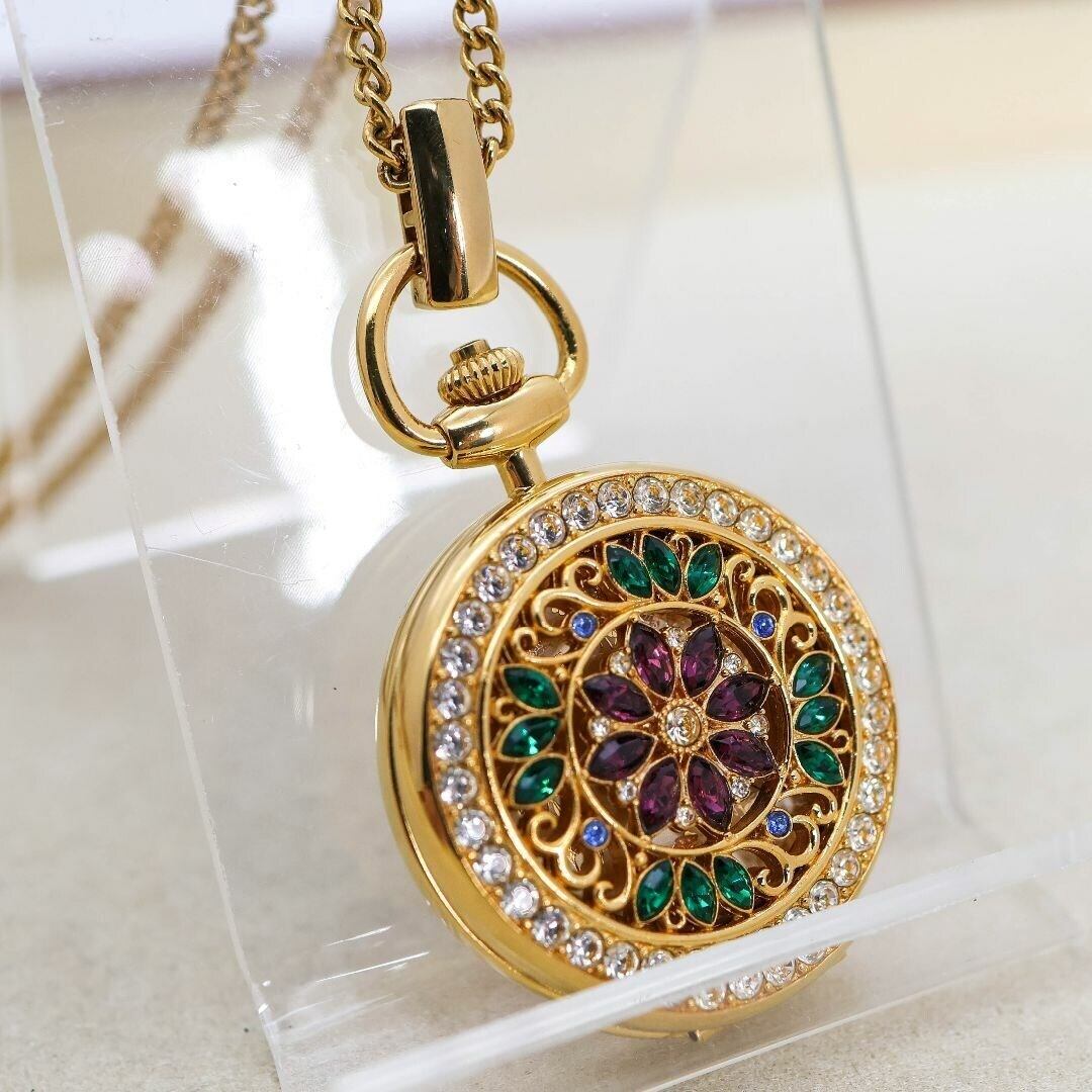 稼働 S.NAPPO 懐中時計 石 ジュエリー ゴールド文字盤 660
