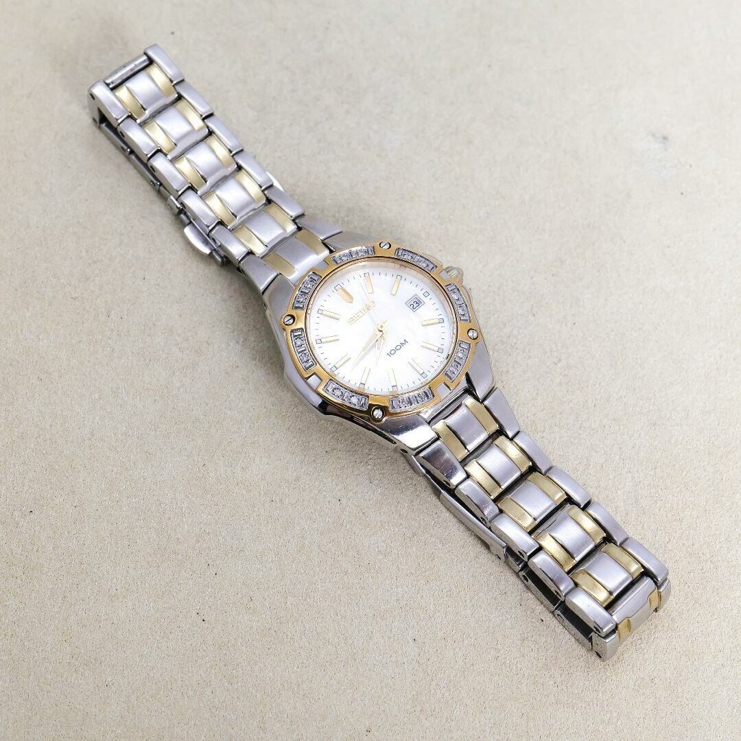 稼働 SEIKO 腕時計 ダイヤベゼル シェル文字盤 レディース 100M979