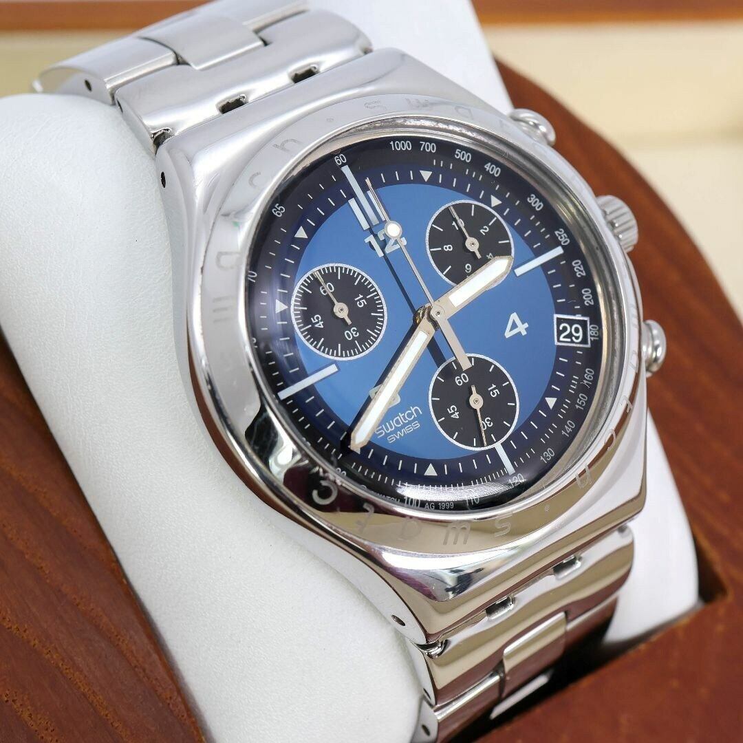 稼働 swatch 腕時計 クロノグラフ デイト メンズ 新品電池 654