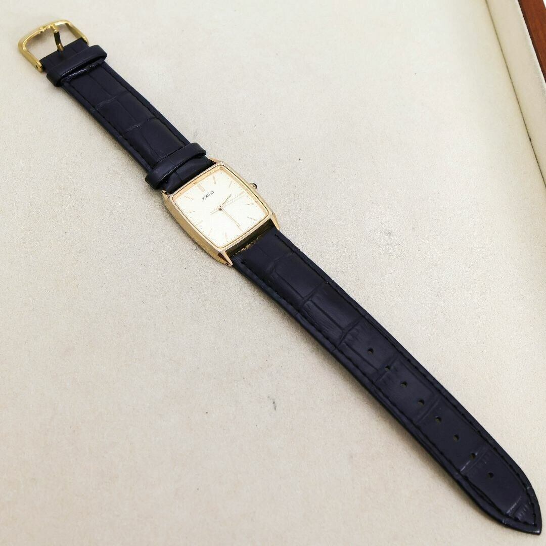 稼働 SEIKO 腕時計 ゴールド文字盤 新品レザーベルト クラシカル 958